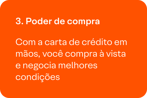 Com a carta de crédito em mãos, você adquire o bem ou serviço à vista, com mais poder de negociação.