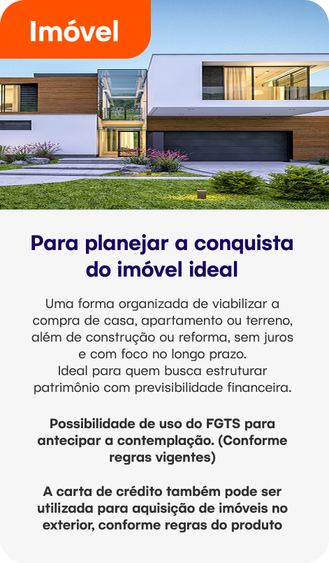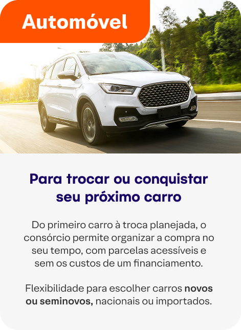 Escolha o consórcio que faz sentido para o seu momento de vida, seus planos e seus objetivos financeiros.