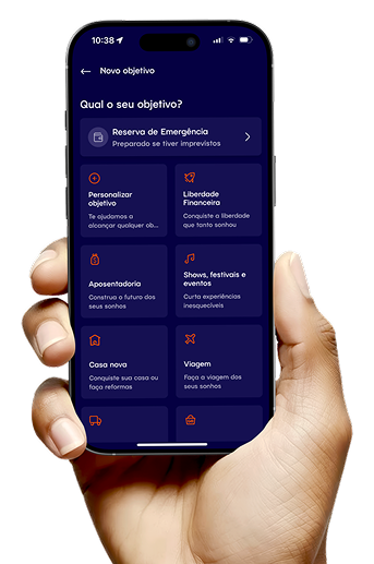 No app da Rico, você vai encontrar a função Meus Objetivos, onde nós te direcionamos aos investimentos certos para cada um dos seus objetivos. Seja uma casa, um carro, uma viagem ou até trocar de celular, com a Rico seus sonhos viram realidade.
