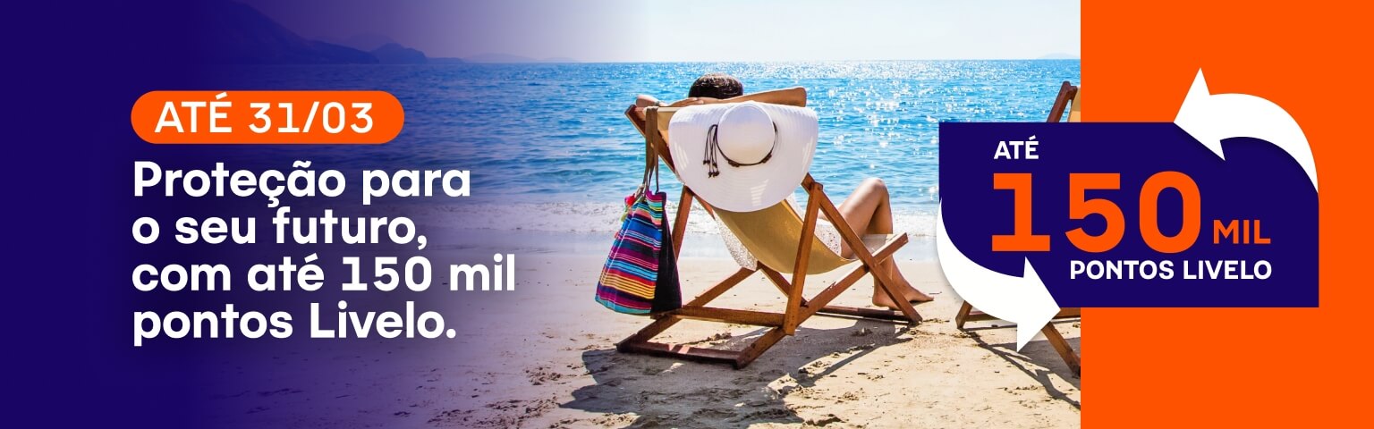 Conheça nossas soluções de proteção financeira e sucessão patrimonial. Você pode ganhar até 150 mil pontos Livelo, aproveite!